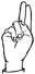 На ћирилици написано РАДНА БАРИЋ састоји се из 10 слова [?]. Исписано ћириличном једноручном азбуком за глувонеме:
